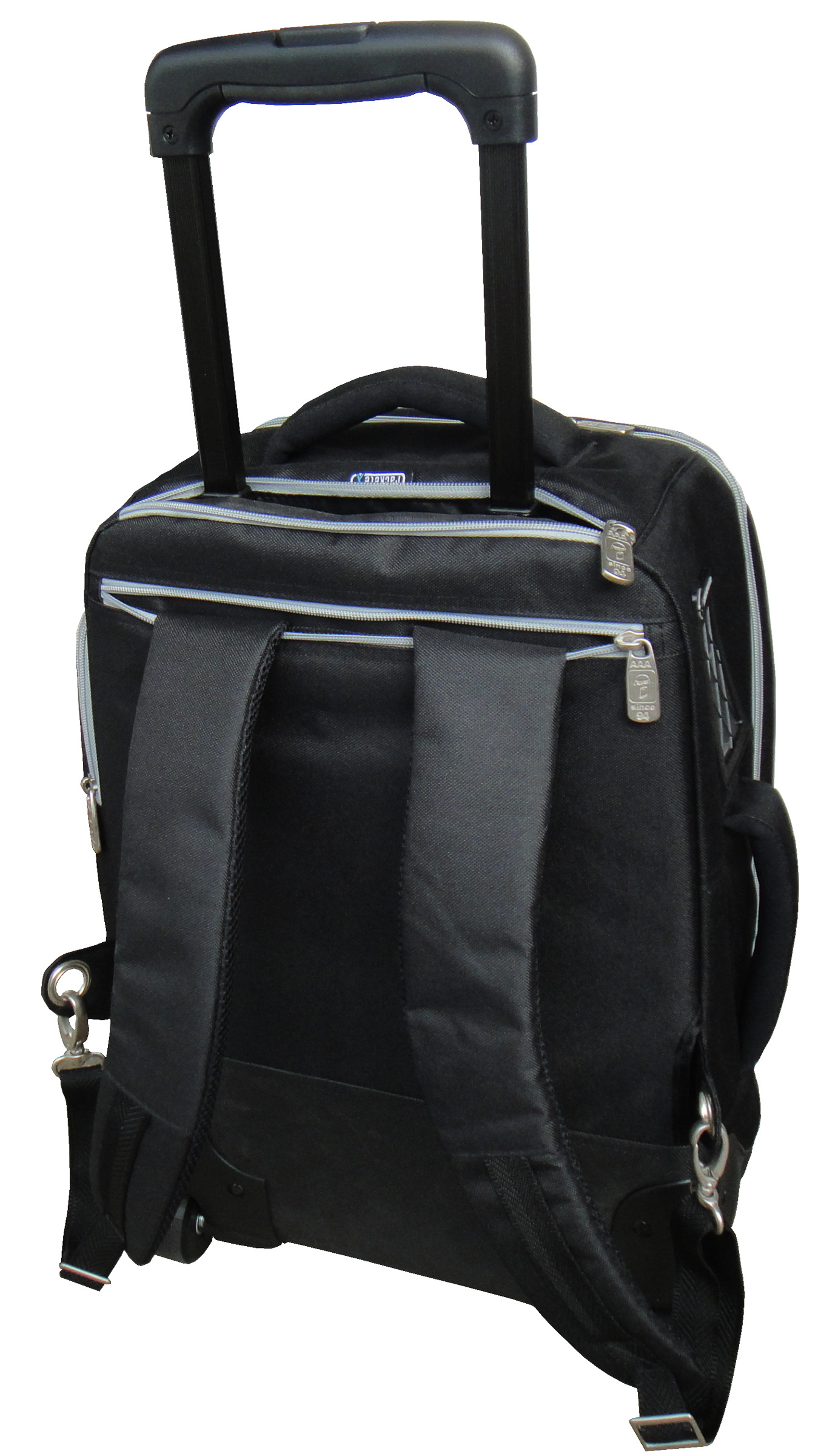 - Carrying handle and padded ruck sack straps that are detachable and can be stowed away behind zipped back pocket.